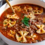 Keywords: lasagna soup, bow tie pasta, Italian soup recipe, homemade lasagna, easy weeknight soup, comfort food