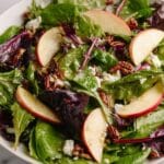 Keywords: Apple Salad, mixed greens, candied pecans, blue cheese, dried cranberries, apple cider vinegar dressing, easy salad recipe, autumn salad