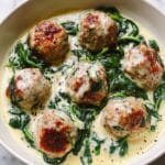- Serve: Plate the baked meatballs and generously spoon the creamy spinach Alfredo sauce over them. Serve immediately with pasta, bread, or enjoy on their own.