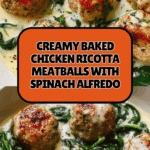 Keywords: chicken meatballs, ricotta meatballs, spinach Alfredo, baked meatballs, creamy Alfredo sauce, Italian chicken recipe, family dinner, easy chicken recipes