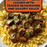 Keywords: Beef Stroganoff, Mushroom Stroganoff, Creamy Beef Pasta, Egg Noodles, One-Pan Dinner, Hearty Dinner, Comfort Food