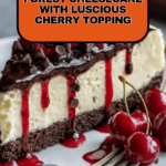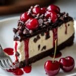 Keywords: Black Forest Cheesecake, chocolate cheesecake, cherry cheesecake, chocolate cake base, creamy cheesecake dessert, holiday desserts