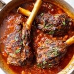 This classic Lamb Shank recipe features tender, fall-apart meat slow-cooked in a rich tomato, red wine, and fresh herb sauce. Perfectly seared lamb shanks are braised in the oven with aromatic vegetables and herbs, resulting in a deeply flavorful and comforting dish ideal for special occasions or cozy dinners.