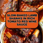 Keywords: Lamb shank, braised lamb, oven-braised lamb, tomato sauce, red wine, slow-cooked lamb, Mediterranean lamb recipe
