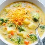 Keywords: broccoli soup, potato soup, cheese soup, creamy soup, vegetarian soup, comfort food, easy soup recipe, cheddar cheese soup
