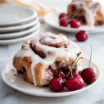 These Cherry Chocolate Rolls, inspired by Black Forest flavors, combine rich cocoa dough with sweet cherries and creamy chocolate chips. Soft, tender, and topped with a smooth vanilla glaze, they make a delightful treat for any occasion.