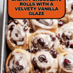 Delight in these Cherry Chocolate Rolls, a decadent twist on the classic cinnamon roll featuring rich cocoa dough, luscious cherry and chocolate fillings, and a smooth vanilla glaze. Inspired by the flavors of Black Forest cake, these rolls offer a perfect balance of sweet cherries, dark and white chocolate, and creamy vanilla butter, baked to golden perfection for an indulgent treat.