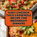 Keywords: chicken taco casserole, baked taco casserole, Mexican casserole, easy chicken dinner, cheesy casserole, weeknight dinner