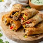 Keywords: Southwest egg rolls, Chili’s copycat recipe, chicken egg rolls, appetizer, fried egg rolls, avocado ranch sauce, party snacks