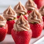 Store the stuffed strawberries in an airtight container in the refrigerator for up to 4 hours. Because the strawberries release moisture over time, it’s best to enjoy them the same day they’re made. If you need to prepare the filling ahead of time, keep it refrigerated and pipe just before serving.