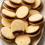 Keywords: chocolate orange cookies, sandwich cookies, chocolate ganache cookies, orange zest cookies, holiday cookies, buttery cookies, chocolate filling