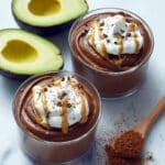- Serve or chill: Spoon the pudding evenly into 4 small serving dishes. If using, top with coconut cream or whipped cream and drizzle extra peanut butter over the top. Serve immediately if the avocados were cold, or refrigerate for at least 15 minutes to allow the pudding to chill and thicken. It can be kept in the fridge for up to 2 days.