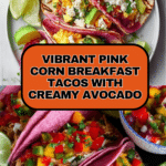 Bring a burst of color and flavor to your breakfast with these vibrant pink corn tortillas topped with fluffy scrambled eggs, creamy avocado, and fresh salsa. This recipe is as delightful to the eyes as it is to the palate, perfect for a special morning treat or brunch gathering.