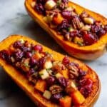 Enjoy the comforting flavors of fall with these Cranberry Apple Twice-Baked Sweet Potatoes. The natural sweetness of baked sweet potatoes pairs beautifully with a warm, spiced cranberry and apple filling, enhanced by butter, cinnamon, nutmeg, and maple syrup. This delicious side dish is perfect for Thanksgiving or cozy weeknight dinners, adding a festive touch to any meal.