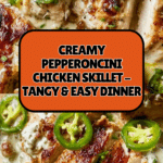 Tangy, creamy, and packed with flavor — this Creamy Pepperoncini Chicken Skillet is a dinner you’ll crave again and again. It combines tender chicken strips with pepperoncini peppers in a luscious parmesan cream sauce, making it perfect for quick weeknight meals or casual gatherings.