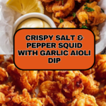 Keywords: crispy squid, salt and pepper squid, fried squid, seafood appetizer, squid recipe, garlic aioli, crispy batter squid