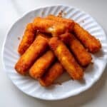 - Fry the Mozzarella Sticks: Carefully drop wrapped cheese sticks into the hot oil. Fry for 1-2 minutes until they turn golden brown and crispy.