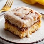 - Drizzle Glaze and Serve: Before serving, drizzle the vanilla glaze generously over the warm cake. Serve warm and enjoy the gooey, cinnamon-laced dessert.