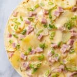 - Step 4: Gently fold in the sliced potatoes and diced ham, ensuring every potato slice is coated with the creamy mixture.
