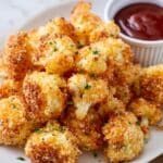 These Crunchy Parmesan Cauliflower Bites are a deliciously crispy and cheesy snack or appetizer perfect for any occasion. Lightly coated in panko breadcrumbs and finely ground Parmesan cheese, then baked to golden perfection, these bites offer a satisfying crunch and savory flavor, ideal for dipping in marinara sauce.