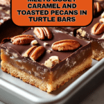 Keywords: turtle bars, caramel bars, pecan bars, chocolate caramel dessert, layered bars, shortbread crust, holiday dessert, easy dessert