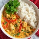 This Easy Thai Red Curry Chicken recipe features tender chicken strips simmered in a fragrant and creamy red curry sauce made with coconut milk, Thai red curry paste, and fresh vegetables. Perfectly balanced with savory, sweet, and tangy flavors, it’s a quick and flavorful dish that brings authentic Thai taste to your table in about 30 minutes.