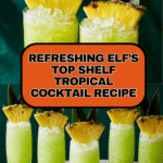 The Elf’s Top Shelf is a vibrant and tropical cocktail that combines the bright sweetness of Midori melon liqueur with the exotic flavors of passion fruit and pineapple juices, balanced by fresh lemon juice and a touch of creamy coconut. Perfectly chilled and garnished with pineapple, it’s a refreshing and visually appealing drink ideal for festive occasions or a relaxing evening.