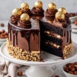 Keywords: Ferrero Rocher cake, chocolate cake, hazelnut frosting, Nutella cake, layered cake, chocolate hazelnut dessert, homemade chocolate cake