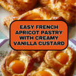 This classic French Apricot Pastry recipe features flaky puff pastry filled with smooth, homemade vanilla pastry cream and topped with sweet apricot halves, finished with a glossy apricot jam glaze. Perfect for a delightful breakfast or elegant dessert.