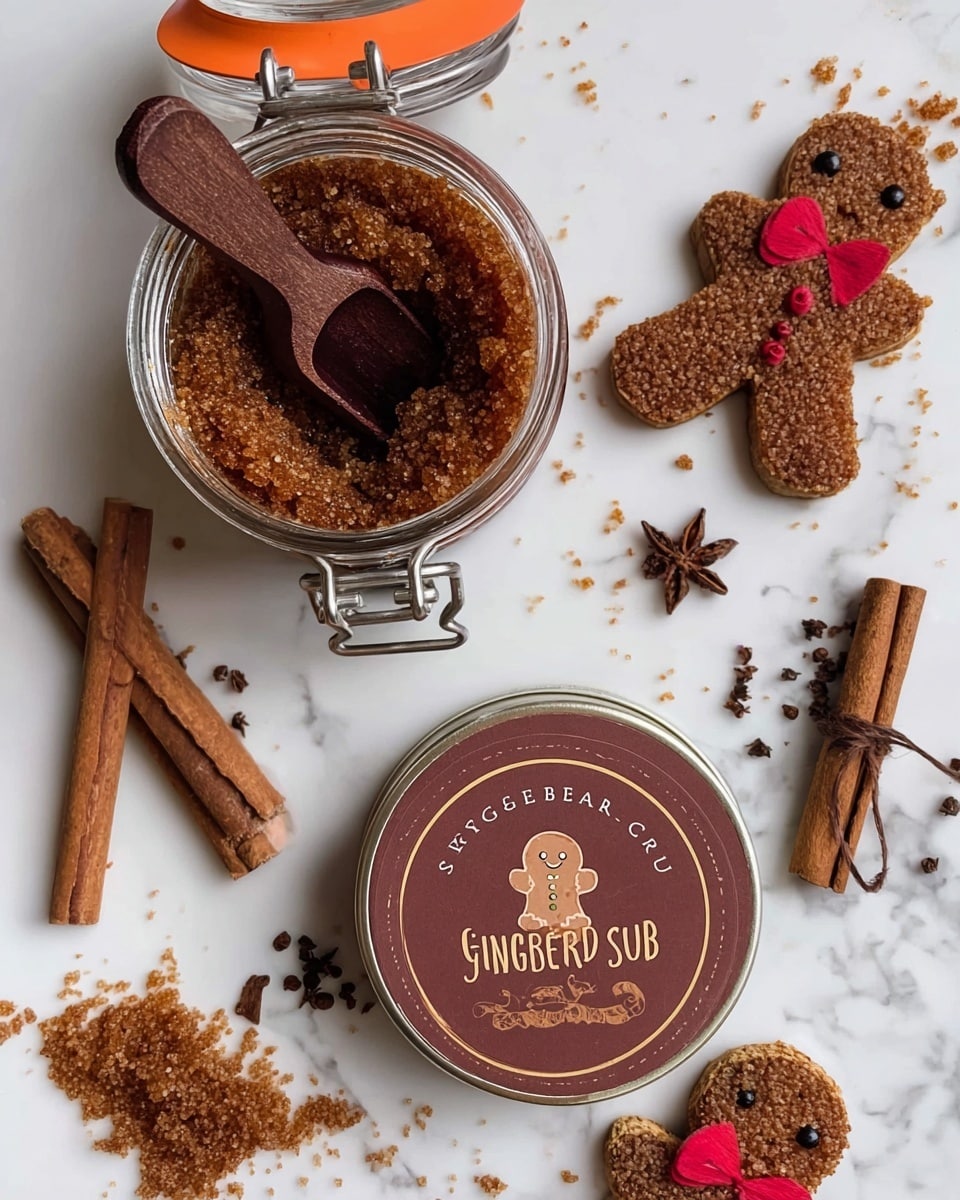 Keywords: gingerbread sugar scrub, homemade body scrub, natural exfoliant, DIY skincare, vegan sugar scrub, moisturizing scrub, holiday scrub, brown sugar scrub