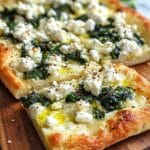 This Greek Roasted Garlic Spinach White Pizza features a flavorful blend of roasted garlic, fresh spinach, and a medley of creamy cheeses on a crispy pizza crust. Perfectly seasoned with oregano and optional crushed red pepper flakes, it’s a delicious vegetarian pizza that combines Mediterranean flavors with a satisfying cheesy finish.