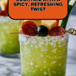 A refreshing and zesty Green Bloody Mary cocktail made with tomatillos, serrano chile, cucumber, and fresh cilantro, blended with vodka and a mix of tangy and spicy seasonings. Perfect for a vibrant twist on the classic Bloody Mary, served chilled with a coarse sugar rim.