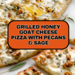 Keywords: grilled pizza, goat cheese pizza, honey pizza, easy pizza recipe, summer grilling, pecan pizza, fresh sage pizza