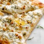 - Garnish and Serve: Remove the pizza from the grill, sprinkle the fresh chopped sage over the top, and drizzle with honey for a sweet finish. Serve the pizza immediately while warm.