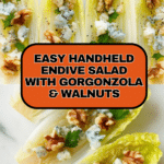 This Handheld Endive Salad is a fresh and elegant appetizer featuring crisp endive leaves filled with tangy gorgonzola, crunchy walnuts, and sweet dried cranberries or pomegranate seeds. Drizzled with honey and seasoned with salt and pepper, it’s a perfect bite-sized salad for entertaining or a light snack.