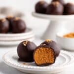These Healthy Pumpkin Truffles are a delicious and guilt-free treat made with pumpkin purée, homemade pumpkin spice, and coated in rich dark chocolate. Naturally sweetened with liquid stevia and using oat flour for a tender filling, these bite-sized truffles are perfect for a quick snack or a festive dessert. Finished with an optional sprinkle of flaky sea salt, they offer a perfect balance of sweet and savory flavors.