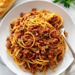 Keywords: meat sauce, ground beef sauce, Italian meat sauce, pasta sauce recipe, homemade tomato sauce, slow simmered sauce