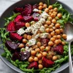 Keywords: chickpea beet salad, roasted beet salad, Mediterranean salad, feta chickpeas, healthy salad, easy meal prep