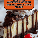 Keywords: brownie cheesecake, hot fudge sundae, dessert recipe, layered cheesecake, easy cheesecake, fudge sauce dessert