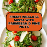 Insalata Mista is a fresh and simple Italian mixed green salad featuring crisp greens, juicy grape tomatoes, shaved Parmesan, and crunchy pine nuts, all tossed in a tangy balsamic vinaigrette made with extra virgin olive oil. Perfect as a light appetizer or side dish that bursts with vibrant flavors and textures.