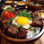 Korean BBQ Steak Rice Bowls combine tender, flavorful steak with spicy gochujang and savory soy sauce, served over steaming hot rice. This simple yet satisfying dish brings Korean-inspired flavors to your dinner table with minimal effort.