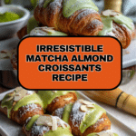 This Matcha Croissant recipe features flaky croissants filled with a luscious matcha-infused almond frangipane cream, topped with sliced almonds and a dusting of matcha powdered sugar. Perfect as a sophisticated breakfast treat or an elegant afternoon snack, this recipe elevates everyday croissants into a delightful green tea-infused pastry experience.