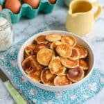 - Serve: Divide the mini pancakes into cereal bowls and drizzle with extra maple syrup before serving.