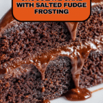 Keywords: chocolate cake, one-bowl cake, salted fudge frosting, easy chocolate cake, homemade chocolate cake, simple chocolate dessert