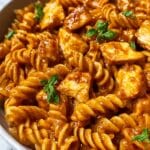 This One-Pot Honey Garlic BBQ Chicken Pasta is a flavorful, easy-to-make meal combining tender chicken, savory BBQ sauce, sweet honey, and perfectly cooked rotini pasta. Cooked all in one pot, this dish is perfect for a quick weeknight dinner with minimal cleanup.