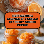 This Orange & Vanilla Exfoliating DIY Body Scrub is a refreshing and natural skincare treat designed to gently exfoliate and nourish your skin. Combining the bright, uplifting scent of sweet orange and warm vanilla with the moisturizing properties of coconut and olive oils, this scrub will leave your skin feeling smooth, hydrated, and invigorated. It’s easy to make at home with simple ingredients and perfect for a rejuvenating self-care routine.