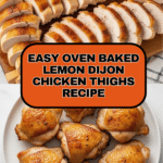This Oven Baked Boneless Skinless Chicken Thighs recipe features juicy, flavorful chicken marinated in a zesty blend of lemon, Dijon mustard, soy sauce, and brown sugar, then baked to perfection. The marinade infuses the chicken with a perfect balance of tangy, savory, and sweet notes while the baking method ensures tender, succulent meat with a slightly caramelized finish, ideal for a quick weeknight dinner or meal prep.