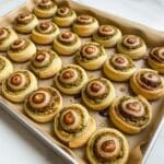 5. Bake the Pinwheels: Arrange the sliced pinwheels on a baking sheet lined with parchment paper, spacing them evenly. Bake in a preheated oven at 425°F (220°C) for about 9 minutes or until they turn golden brown and puff up beautifully.