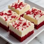 10. Frost and Serve: Spread the cream cheese frosting evenly over the cooled bars. Optionally, sprinkle red velvet crumbs on top for decoration. Slice into bars and serve.