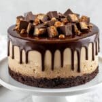 This rich and indulgent Reese’s Cheesecake recipe combines a chocolate graham cracker crust with a creamy, smooth cream cheese filling swirled with chunks of Reese’s Peanut Butter Cups. Perfectly baked and chilled to silky perfection, it’s a decadent dessert that peanut butter and chocolate lovers will adore.